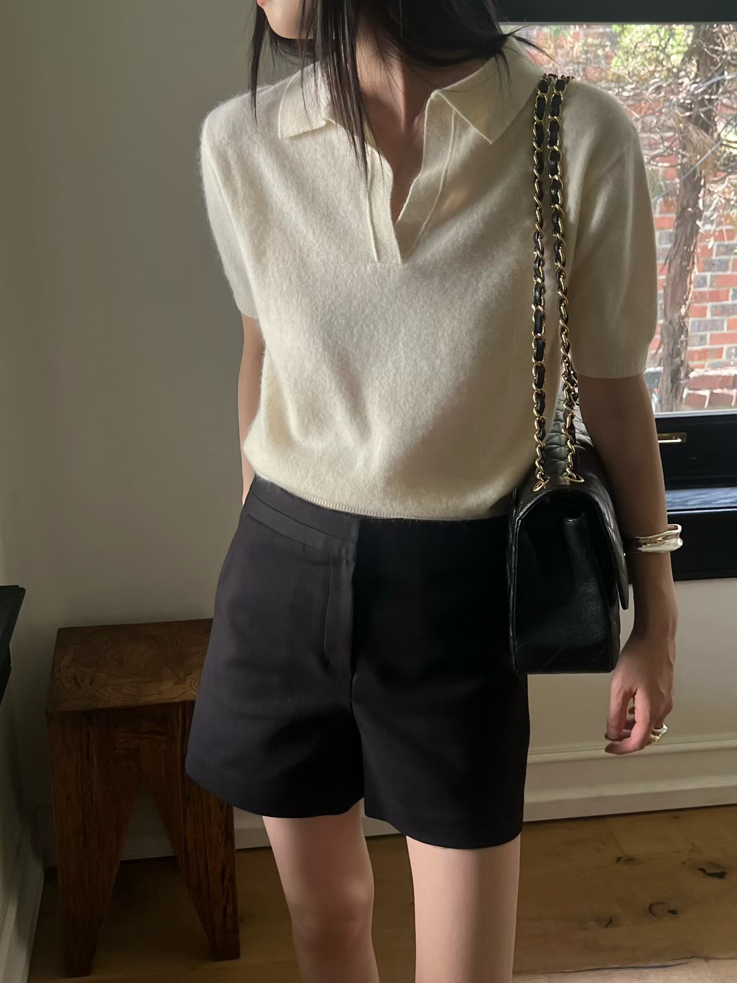 現貨 白色高級羊毛短袖襯衫