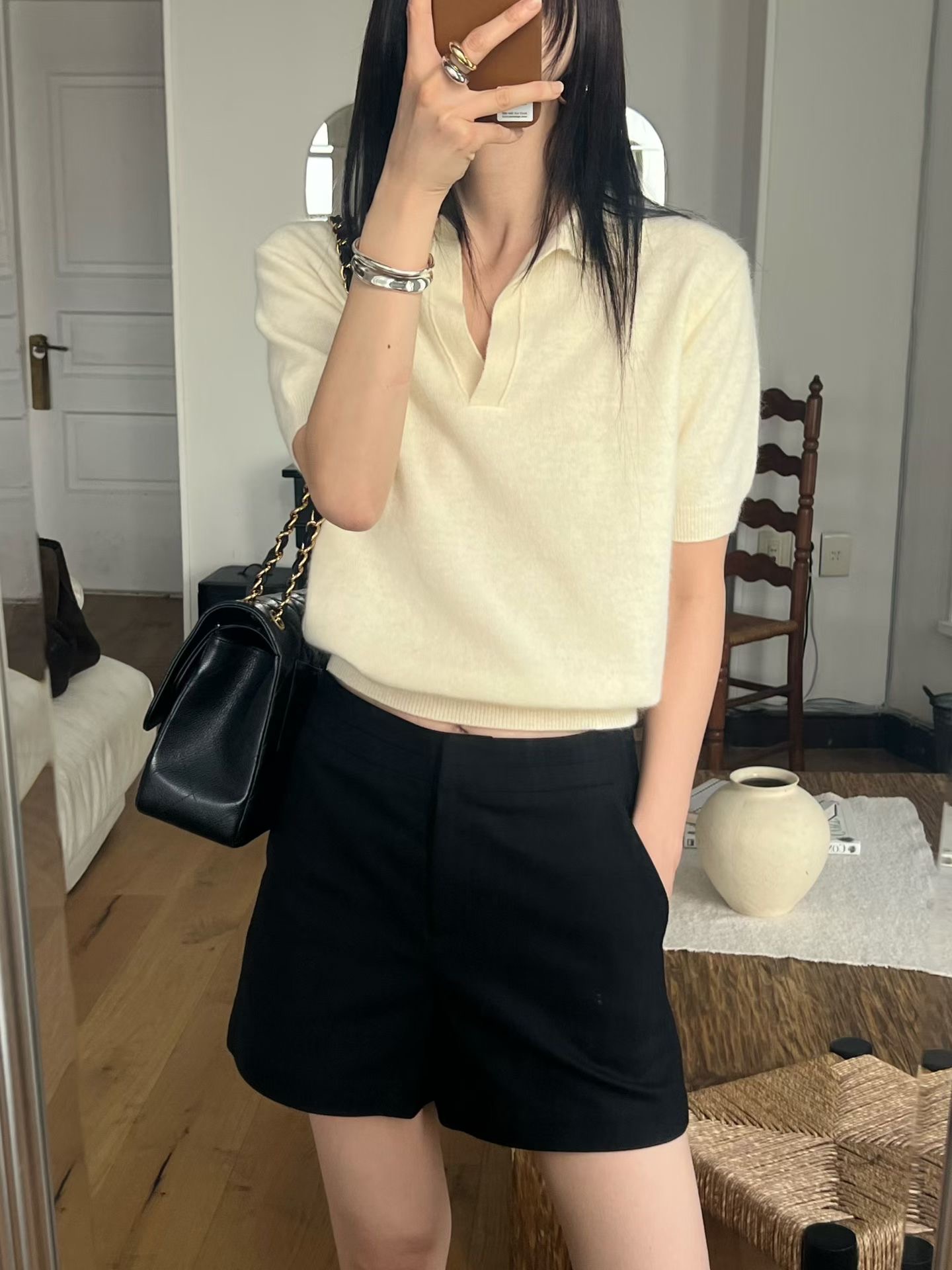 現貨 白色高級羊毛短袖襯衫 數量